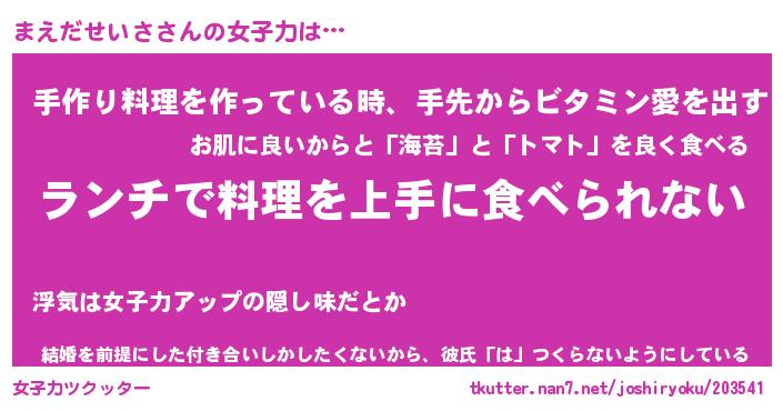 | ヘコむあだ名 | 『まえっふぃ~』『つくし』『まえを』 |
