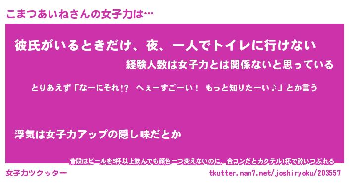 | ヘコむあだ名 | 『こまにゅー』『豆乳』『こまお』 |