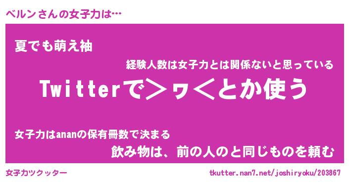 | ヘコむあだ名 | 『ベルっふぃ~』『なまこ酢』 |
