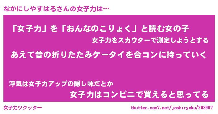 | ヘコむあだ名 | 『なかにゅー』『酢こんぶ』 |
