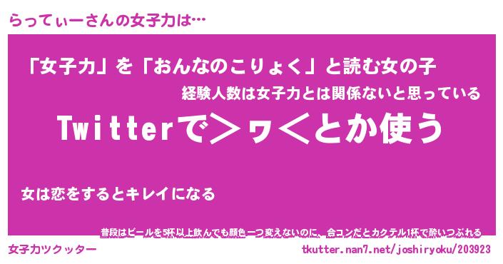 | 男性向けラノベタイトル風あだ名 | 『らってぃーの憂鬱』 |