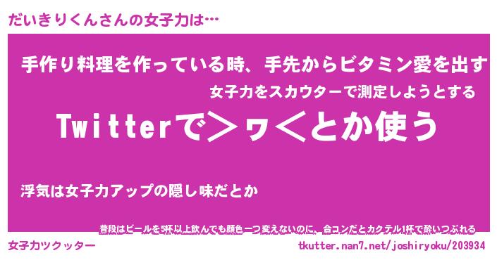 | 恥ずかしいあだ名 | 『プリティーだいきりくん』『だいっちょ』 |