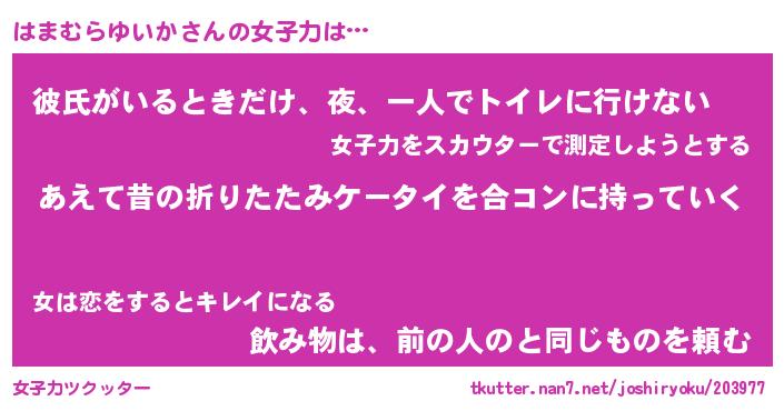 | 胡散臭い通販商品みたいなあだ名 | 『必ず成功する霊験あらたかなお札…その名も「はまむらゆいか」』 |