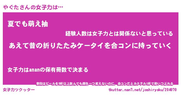 | 意味不明あだ名 | 『ペロリンやぐた』『やぐたフォーエバー』 |