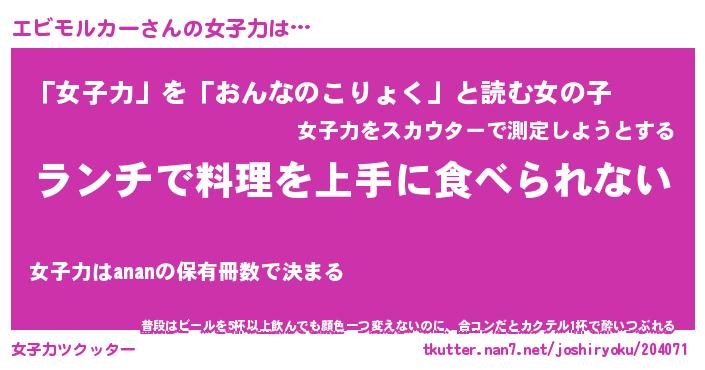 | 胡散臭い通販商品みたいなあだ名 | 『億万長者になれる霊験あらたかなお札…その名も「エビモルカー」』 |