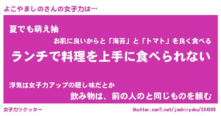 | ヘコむあだ名 | 『よこもー』『酢こんぶ』『よこっぺ』 |
