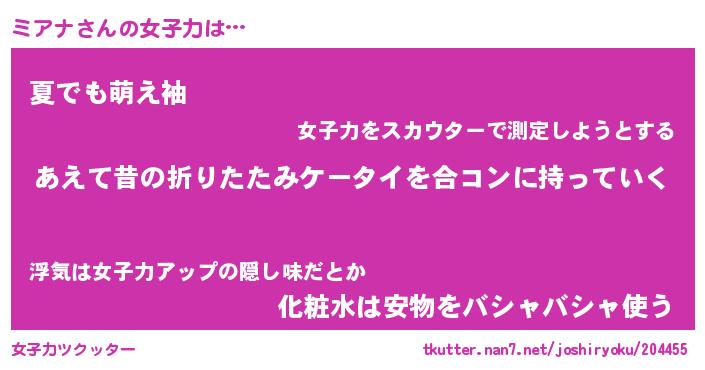 | ヘコむあだ名 | 『ミアっふぃ~』『酢こんぶ』 |