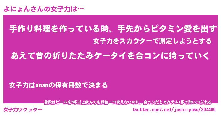 | 恥ずかしいあだ名 | 『プリティーよにょん』『よにっちょ』 |