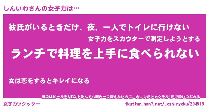 | 恥ずかしいあだ名 | 『プリティーしんいわ』『しんっちょ』 |