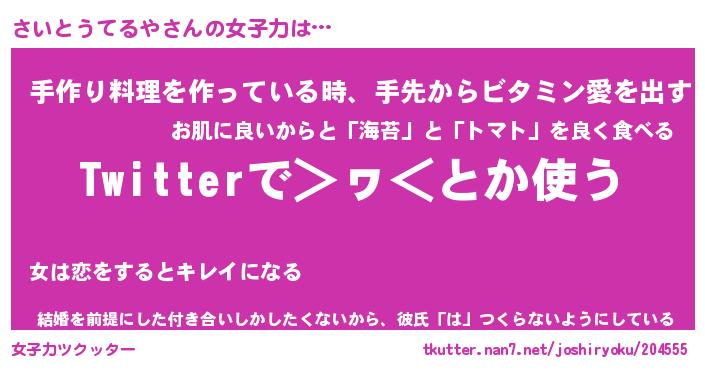 | 恥ずかしいあだ名 | 『プリティーさいとうてるや』『さいちん』 |