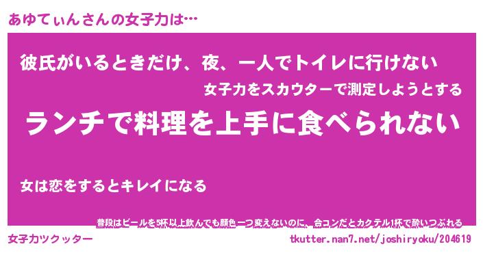 | ファンタジー風あだ名 | 『アユフェル』『エターナルアユティンー』 |