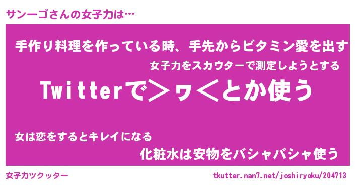 | ヘコむあだ名 | 『サンにゅー』『つくし』『サンお』 |