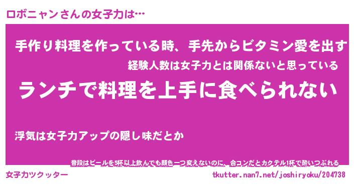 | ファンタジー風あだ名 | 『ロボフェル』『エターナルロボニャンー』 |