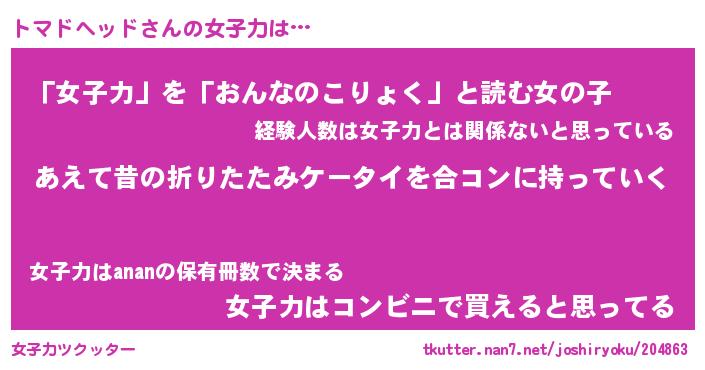 | 男性向けラノベタイトル風あだ名 | 『トマドヘッドの憂鬱』 |