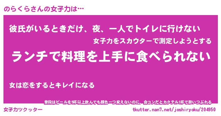| ヘコむあだ名 | 『のらふぇ~』『豆乳』『のら太郎』 |