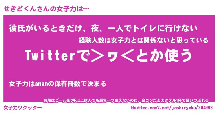 | ヘコむあだ名 | 『せきもー』『豆乳』『せきお』 |