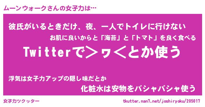 | 男性向けラノベタイトル風あだ名 | 『ムーンウォークの憂鬱』 |