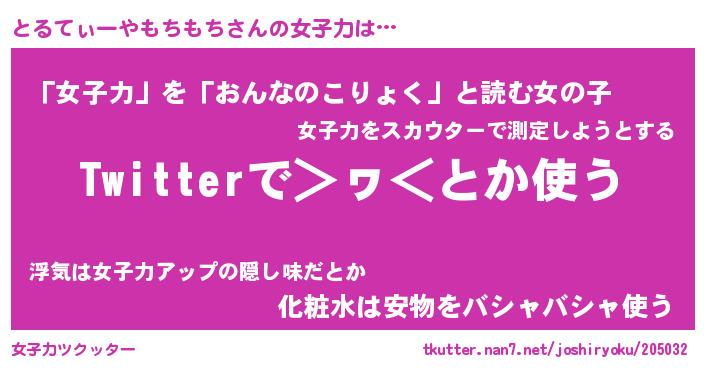 | 女子向けラノベタイトル風あだ名 | 『(仮)とるてぃーやもちもちのやんごとなき事情』 |