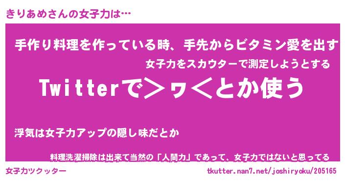 | ヘコむあだ名 | 『きりにー』『つくし』『きりお』 |