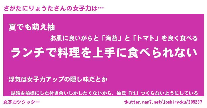 | 女子向けラノベタイトル風あだ名 | 『誰かこのさかたにりょうたを説明してください! ~契約から始まるウェディング~』 |