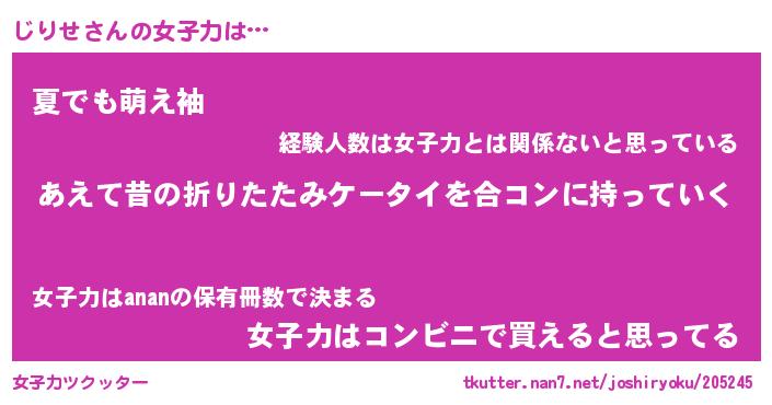 | 男性向けラノベタイトル風あだ名 | 『じりせの憂鬱』 |