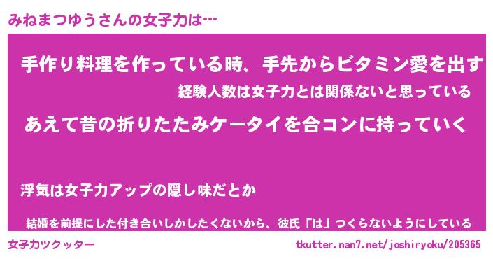 | 女子向けラノベタイトル風あだ名 | 『(仮)みねまつゆうのやんごとなき事情』 |