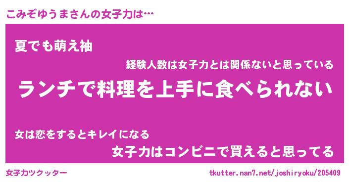 | ヘコむあだ名 | 『こみにゅー』『酢こんぶ』 |