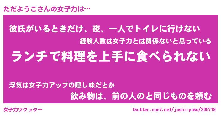 | ヘコむあだ名 | 『ただにゅー』『なまこ酢』 |