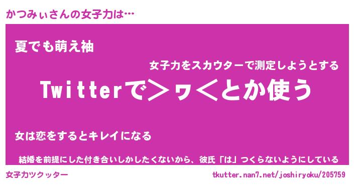 | 意味不明あだ名 | 『ペロリンかつみぃ』『永久保存かつみぃ』 |
