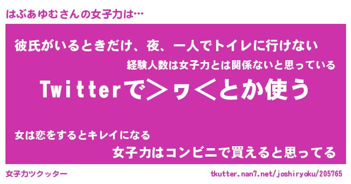 | ヘコむあだ名 | 『はぶにゅー』『レバニラ』『はぶを』 |