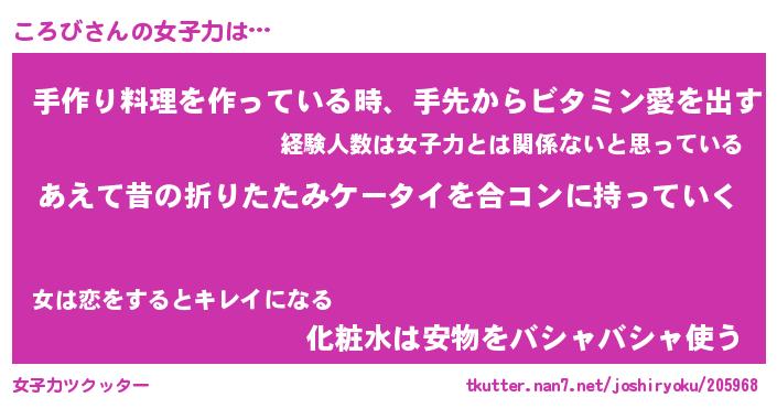 | ヘコむあだ名 | 『ころっふぃ~』『つくし』 |