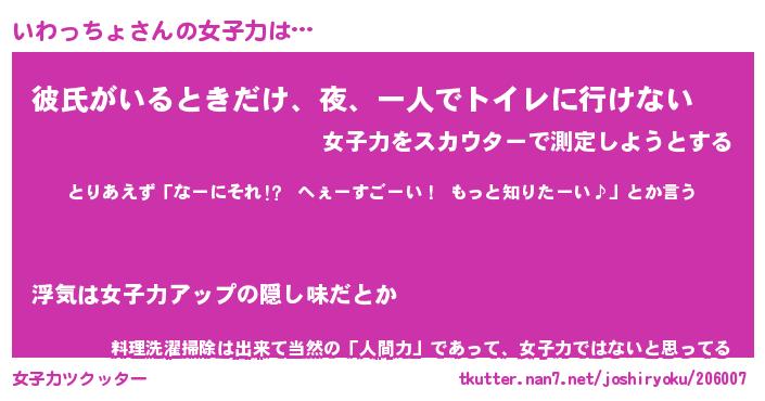 | ヘコむあだ名 | 『いわっふぃ~』『豆乳』 |