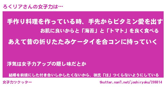 | 意味不明あだ名 | 『ペロリンろくリア』『永久保存ろくリア』 |