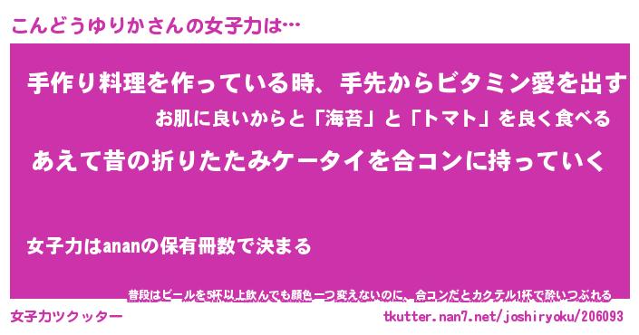| 恥ずかしいあだ名 | 『プリティーこんどうゆりか』『こんちん』 |