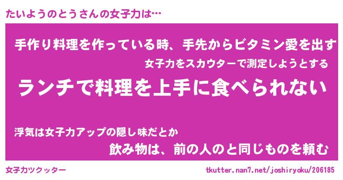 | 料理風あだ名 | 『ネギたっぷりたいようのとうの南蛮漬け』 |