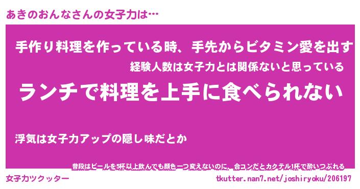 | 料理風あだ名 | 『ネギたっぷりあきのおんなの南蛮漬け』 |