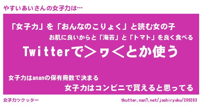 | 男性向けラノベタイトル風あだ名 | 『やすいあいの憂鬱』 |