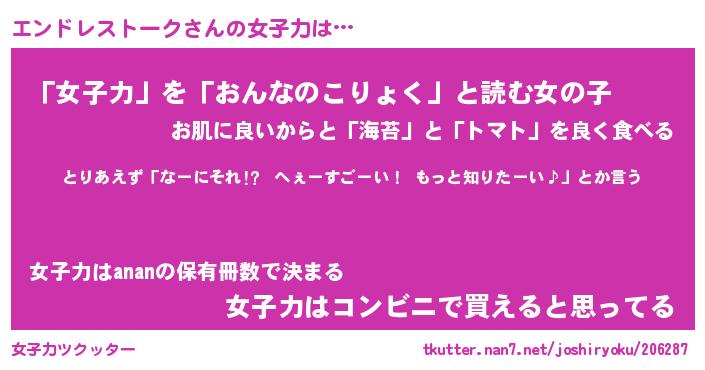 | 女子向けラノベタイトル風あだ名 | 『エンドレストーク姫と円卓の騎士』 |