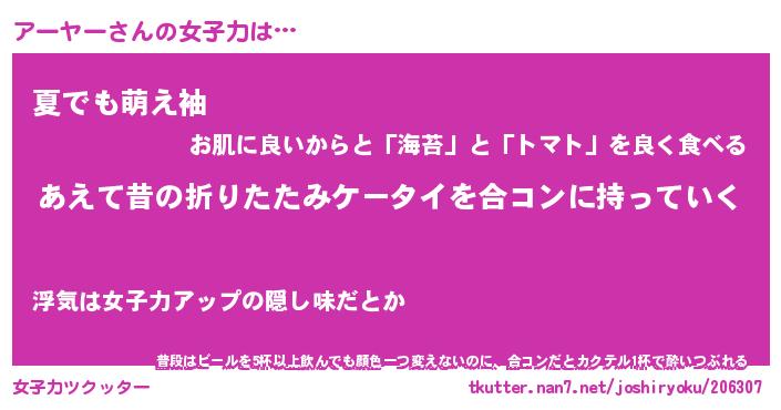 | 意味不明あだ名 | 『ペロリンアーヤー』『永久保存アーヤー』 |