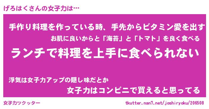 | 料理風あだ名 | 『ネギたっぷりげろはくの南蛮漬け』 |