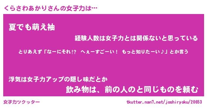| 胡散臭い通販商品みたいなあだ名 | 『モテモテ間違いなし霊験あらたかなお札…その名も「くらさわあかり」』 |