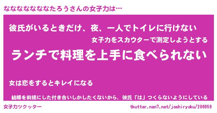 ヘコむあだ名 | 『ななふぇ~』『豆乳』『なな太郎』 |