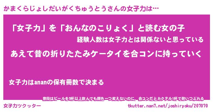 胡散臭い通販商品みたいなあだ名 | 『必ず成功するブレスレット…その名も「かまくらじょしだいがくちゅうとう」』 |