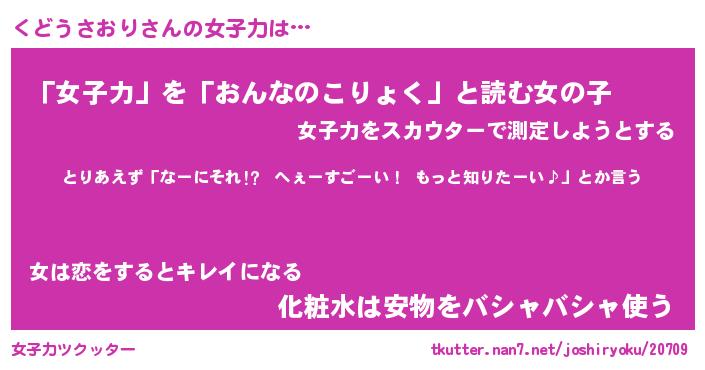 | 恥ずかしいあだ名 | 『プリティーくどうさおり』『くどっちょ』 |