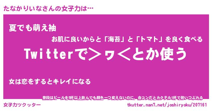 恥ずかしいあだ名 | 『プリティーたなかりいな』『たなっちょ』 |