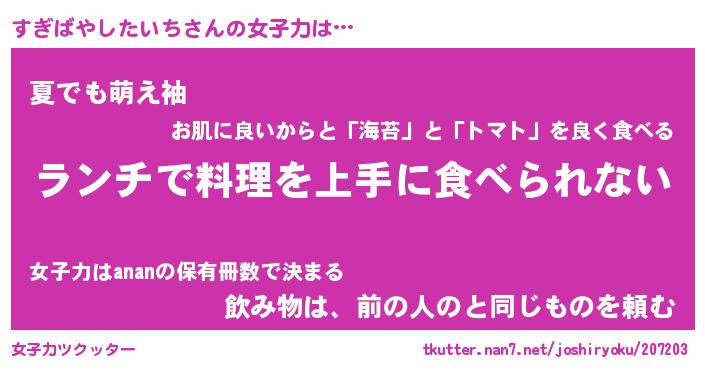 ヘコむあだ名 | 『すぎにー』『なまこ酢』『すぎを』 |