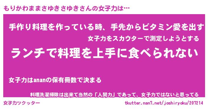 | 肩書あだ名 | 『もりかわままさゆきさゆき店長』 |