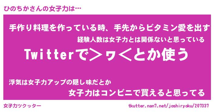 | ファンタジー風あだ名 | 『ヒノフェル』『エターナルヒノチカー』 |