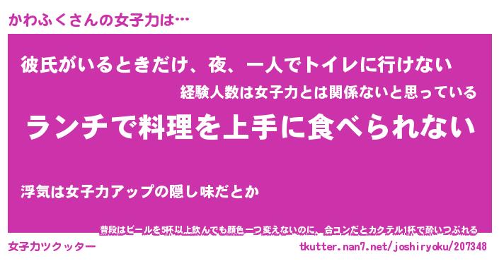 | ヘコむあだ名 | 『かわっふぃ~』『豆乳』『かわっ子』 |