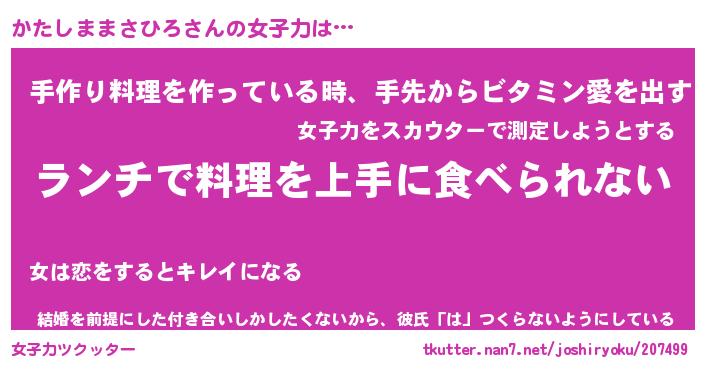 | ヘコむあだ名 | 『かたもー』『つくし』『かたぷりん』 |
